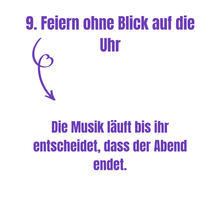 - Am Ende erinnern sich eure Gäste nicht an die Deko, sondern an die Stimmung. An den Moment, wenn alle singen, tanzen und keiner stillstehen kann. Genau darum geht’s.